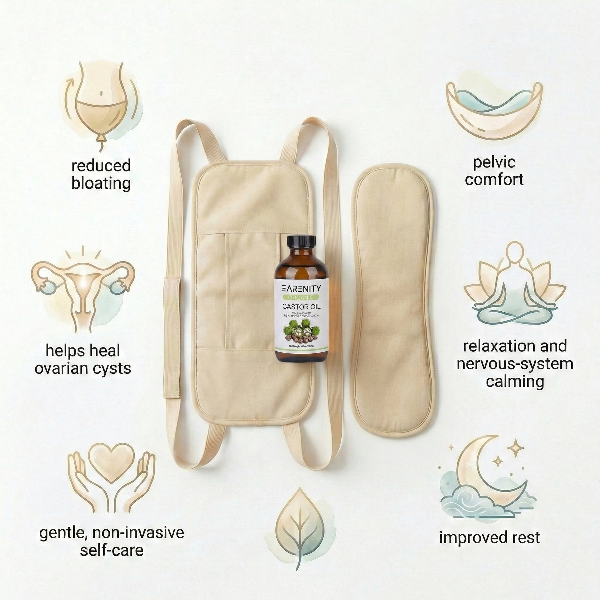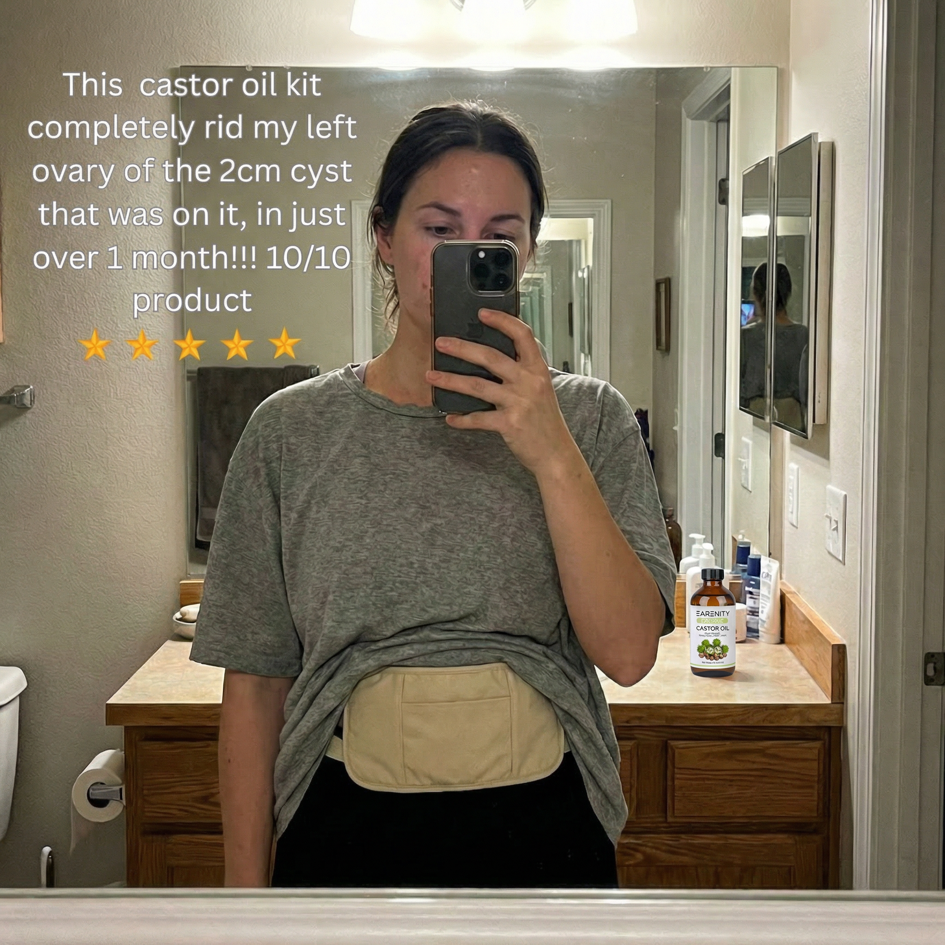 We cant claim this will shrink or cure ovarian cysts. What we CAN tell you is that thousands of women use castor oil packs as part of their nightly comfort routine and report feeling significantly less pain in their ovaries, less bloated, and cyst shrinkage over time. The real benefit is comfort, consistency, and giving your body a gentle nightly ritual. If it helps you feel better during "watch and wait," that's enough.