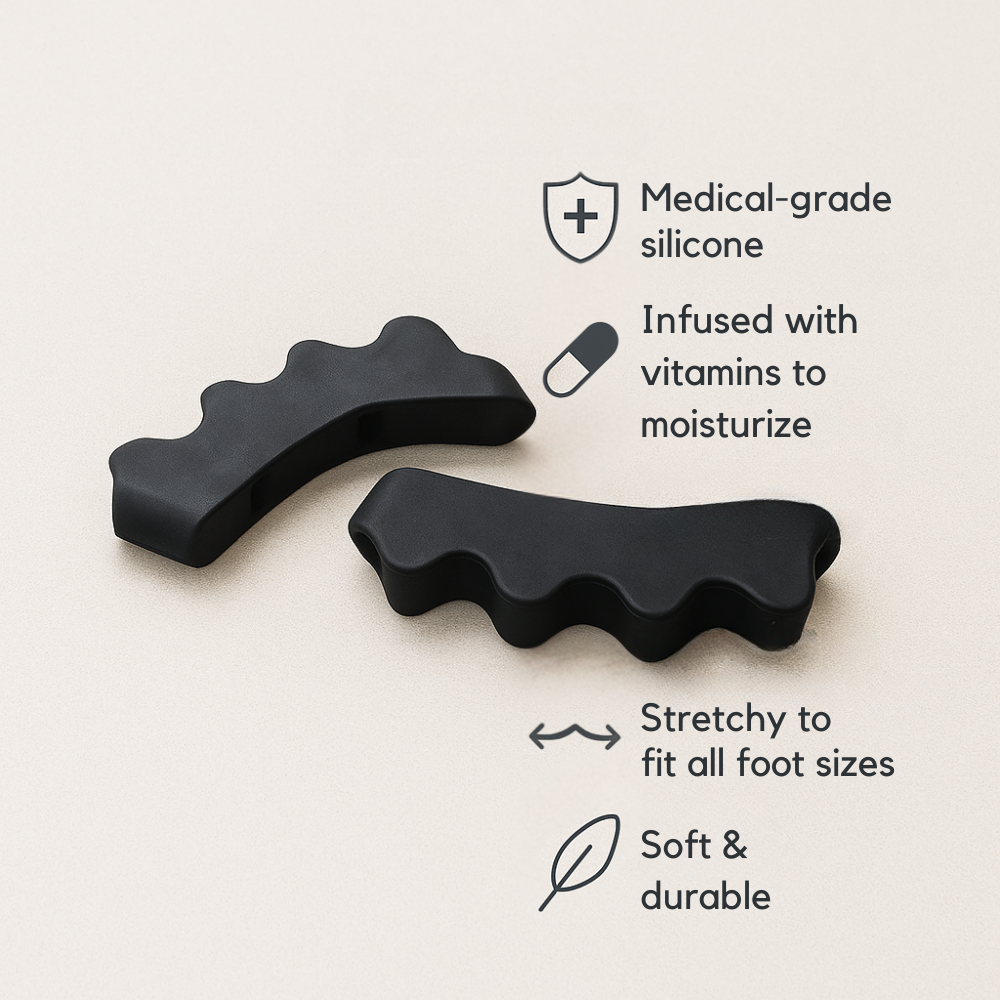 The cheaper toe spacers are often stiff, bulky, or made to hide. Ours is soft, stylish, and designed to help your feet look and feel better.