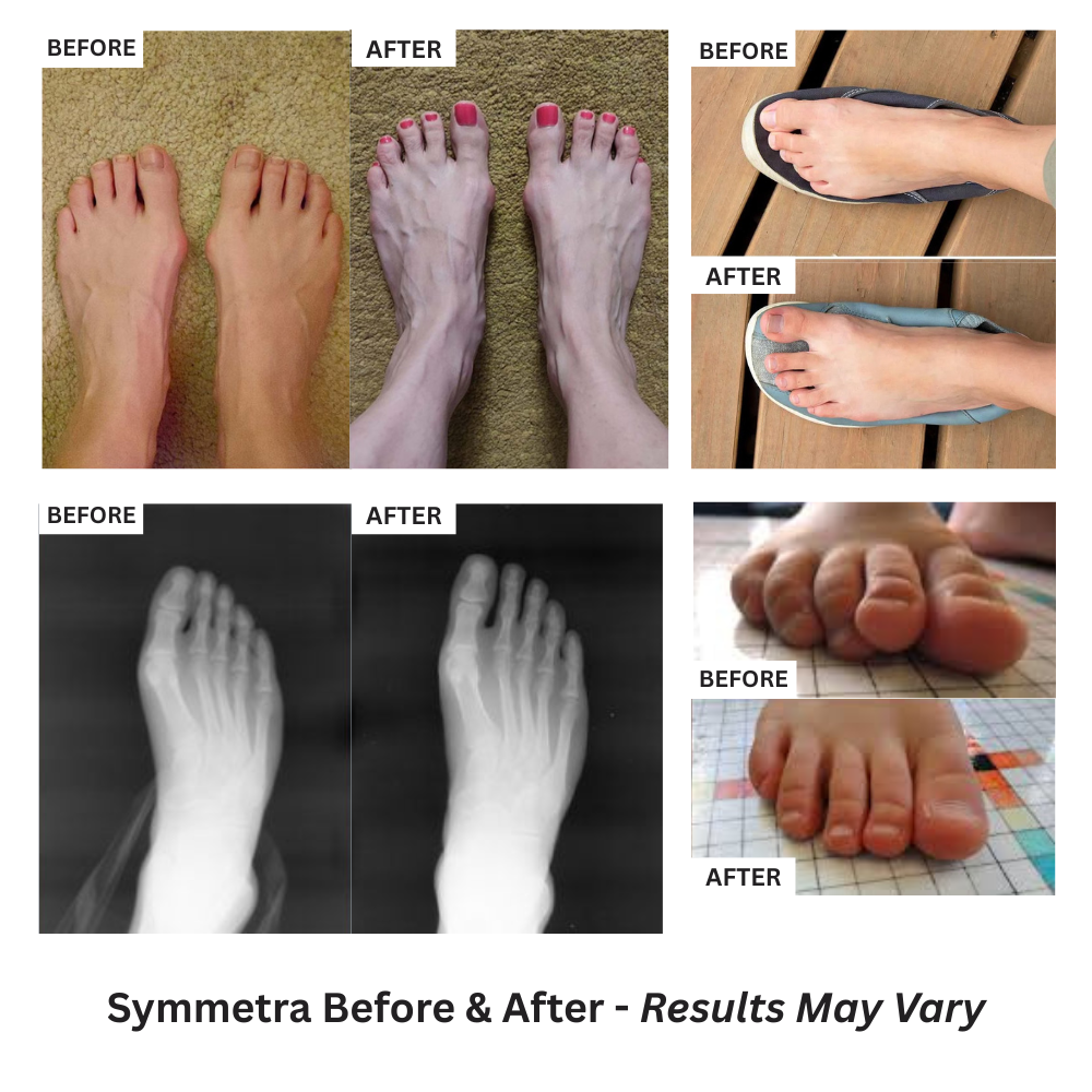 Symmetra is a soft toe tool that gently realigns your toes. It’s comfy to wear anytime—walking, resting, or sleeping. Over time, your toes look straighter and your feet look smoother.